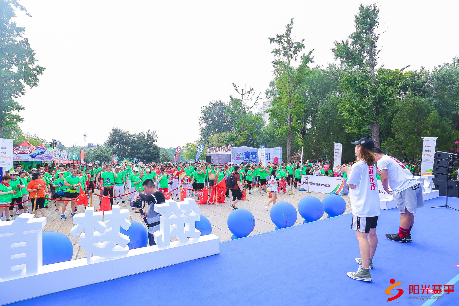 开幕式在上午8:30 举行,济南市体育局徐燕枝女士致辞,山东省体育局群体处副处长吕强同志、济南市全民健身中心主任王震宇同志,济南天下第一泉风景区管理中心党委副书记魏强同志,济南市全民健身中心副主任杨本升同志,绿地山东区域管理总部综合管理中心总监助理肖辉杰同志,出席开幕式并共同鸣笛开赛!
